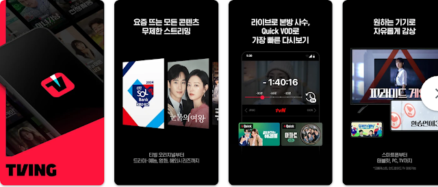 TVING은 다양한 콘텐츠를 제공하는 대한민국의 대표적인 OTT(Over The Top) 서비스 중 하나입니다. 실시간 TV 채널 시청부터 최신 영화, 드라마, 예능 프로그램까지 다양한 엔터테인먼트를 제공합니다.